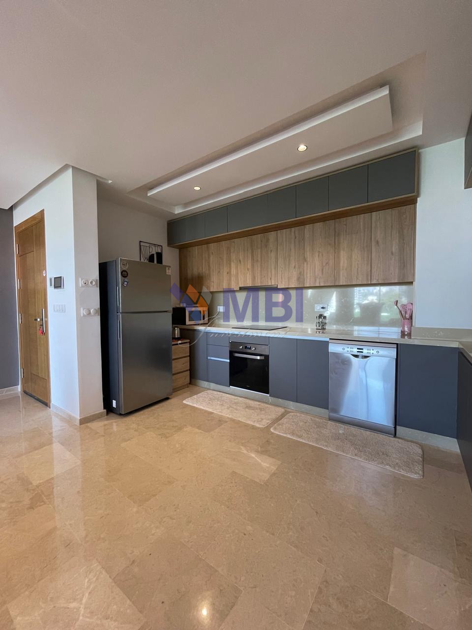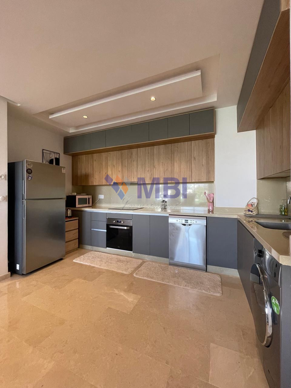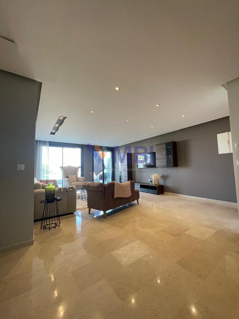 Finitions modernes : parquet dans les chambres, marbre au sol, climatisation centralisée, cuisine d’importation, sanitaire moderne, jolis finitions, grandes baies vitrées , placards encastrés, ..