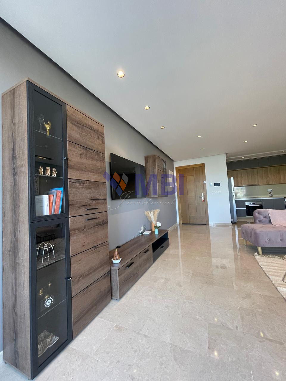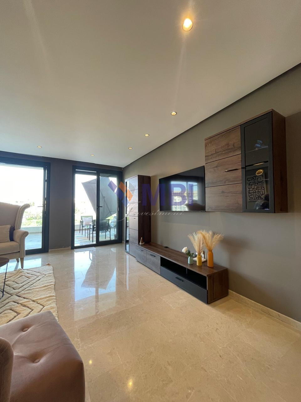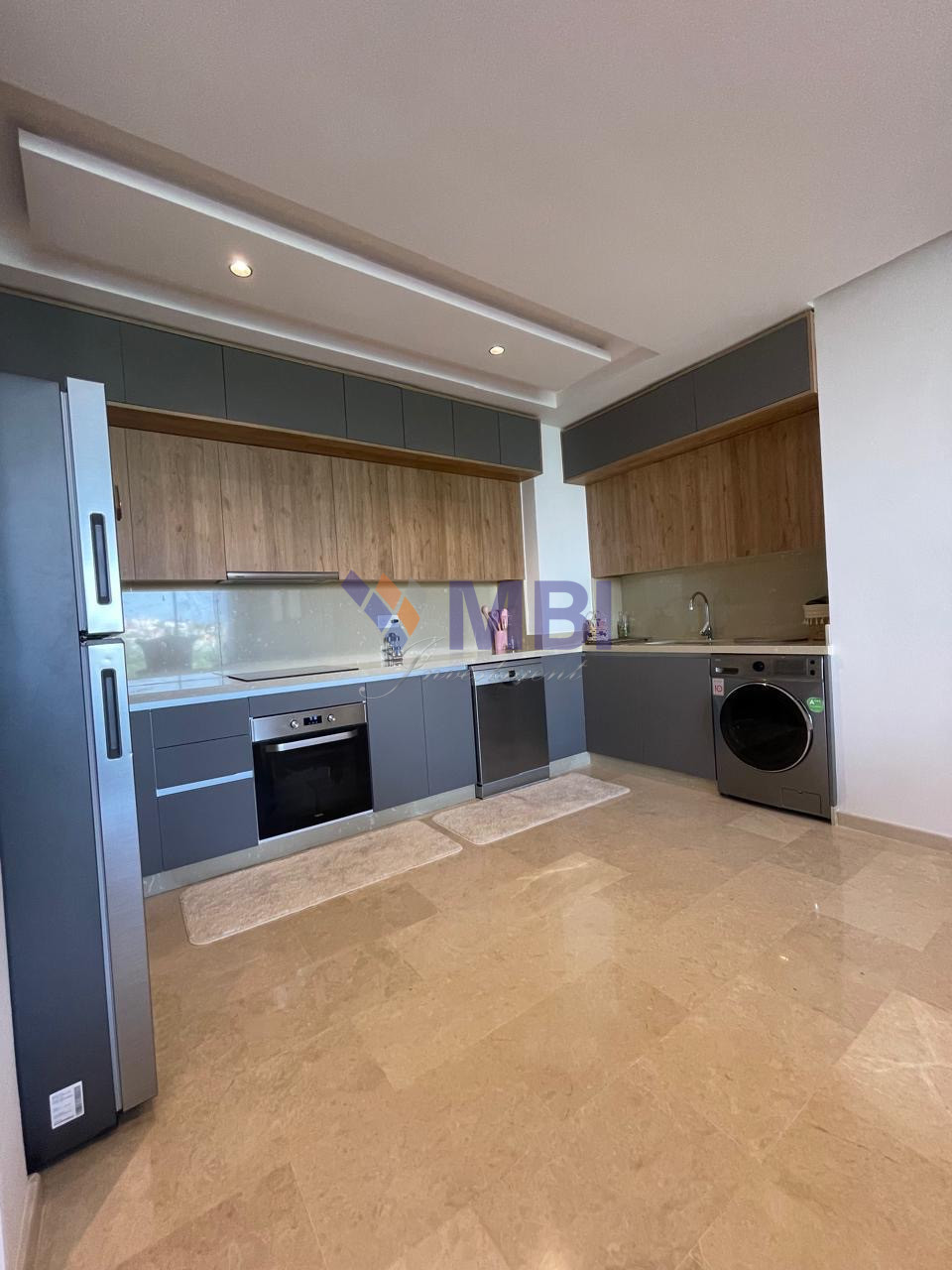 Finitions modernes : parquet dans les chambres, marbre au sol, climatisation centralisée, cuisine d’importation, sanitaire moderne, jolis finitions, grandes baies vitrées , placards encastrés, ..
