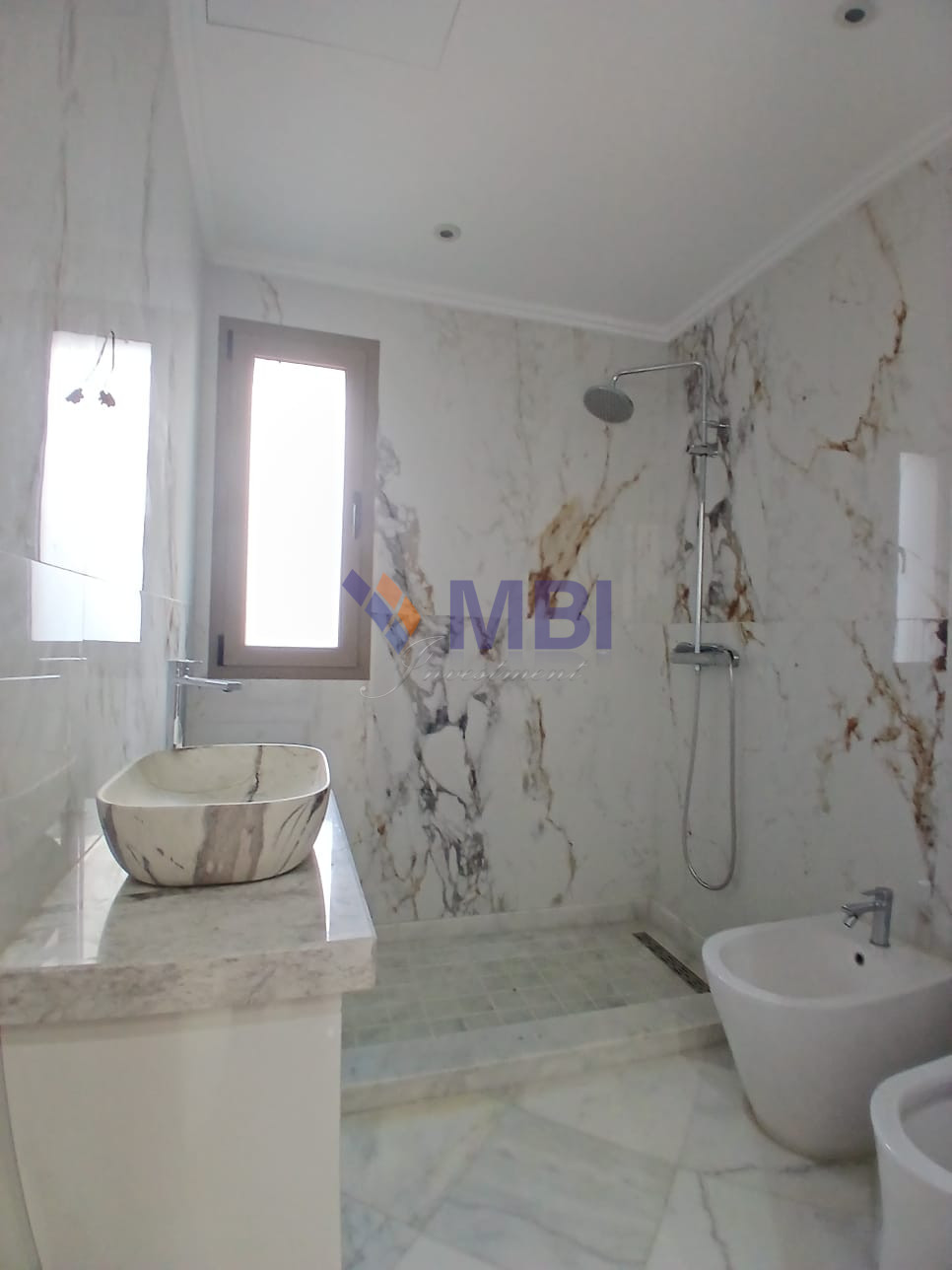 Finitions modernes : marbre au sol, chauffé grâce aux serpentins, climatisation centralisée, cuisine d’importation, sanitaire moderne, jolis finitions