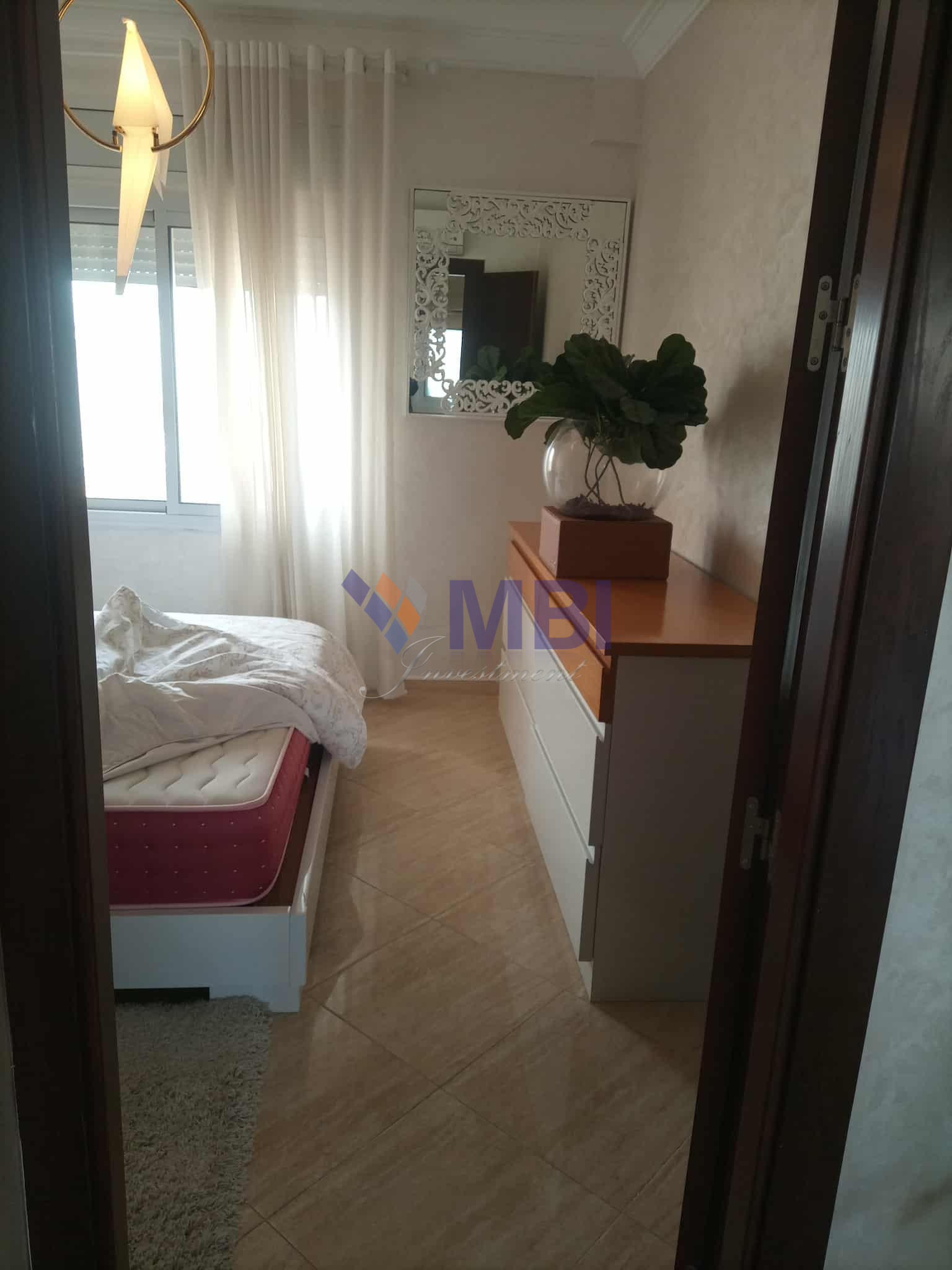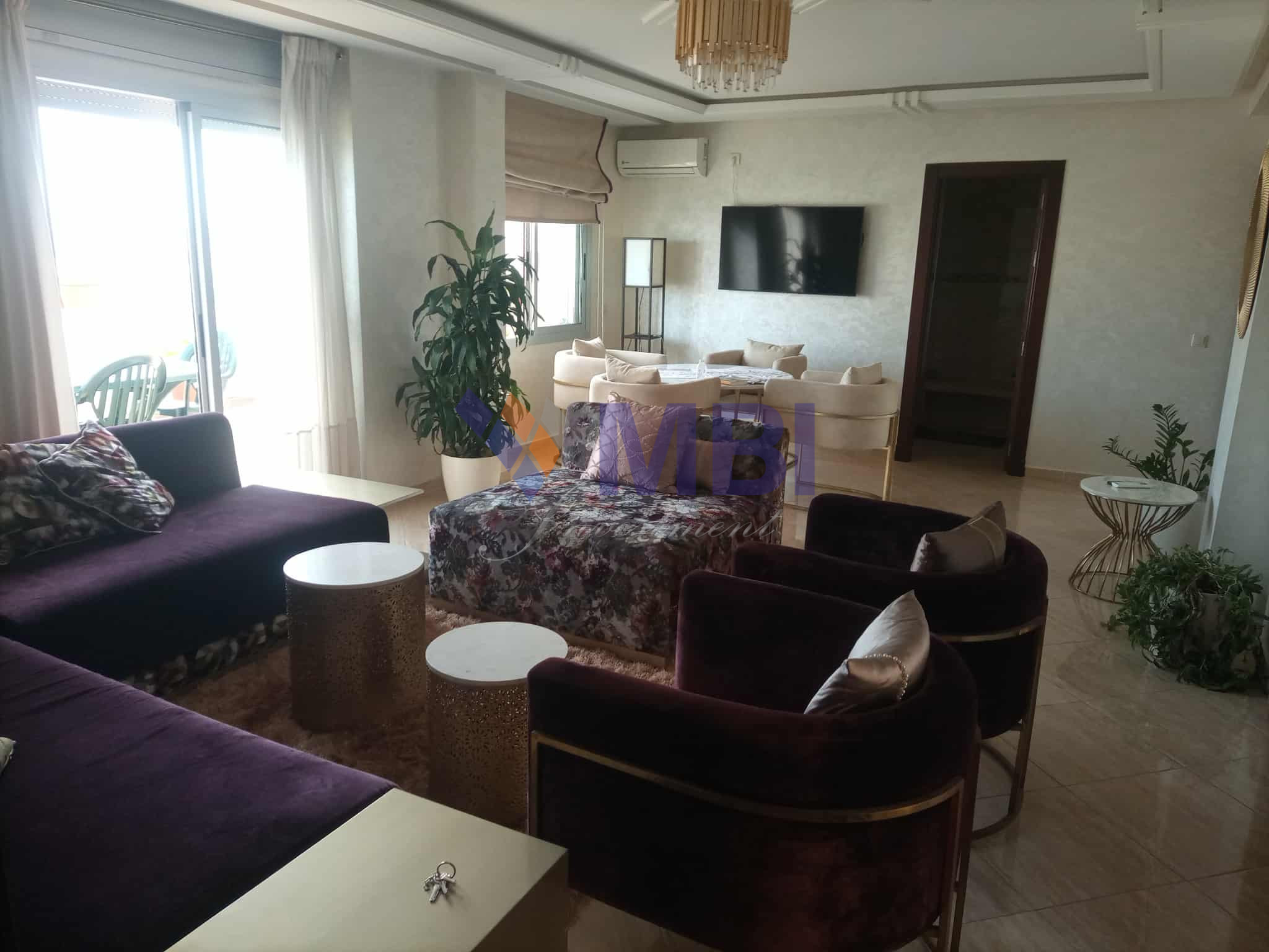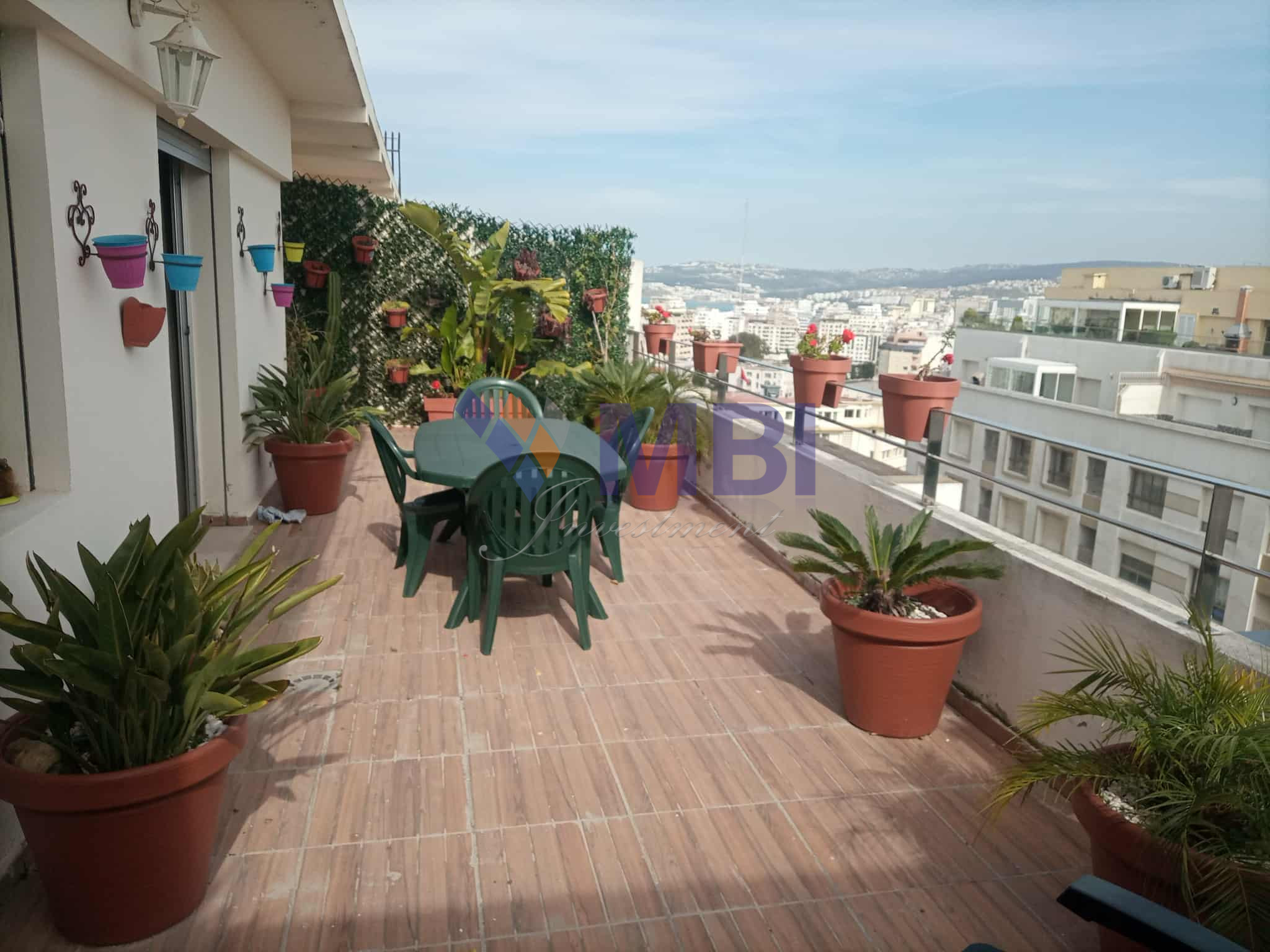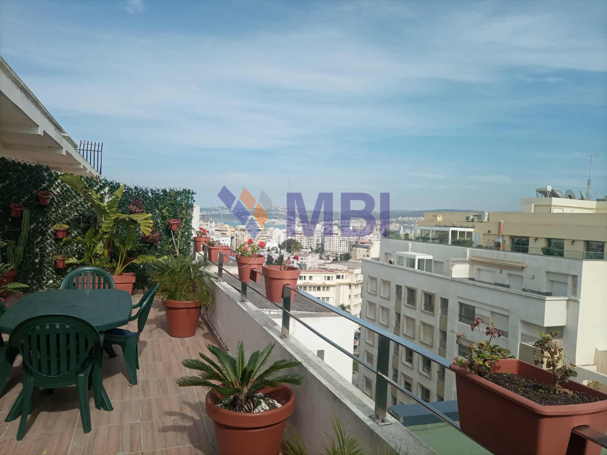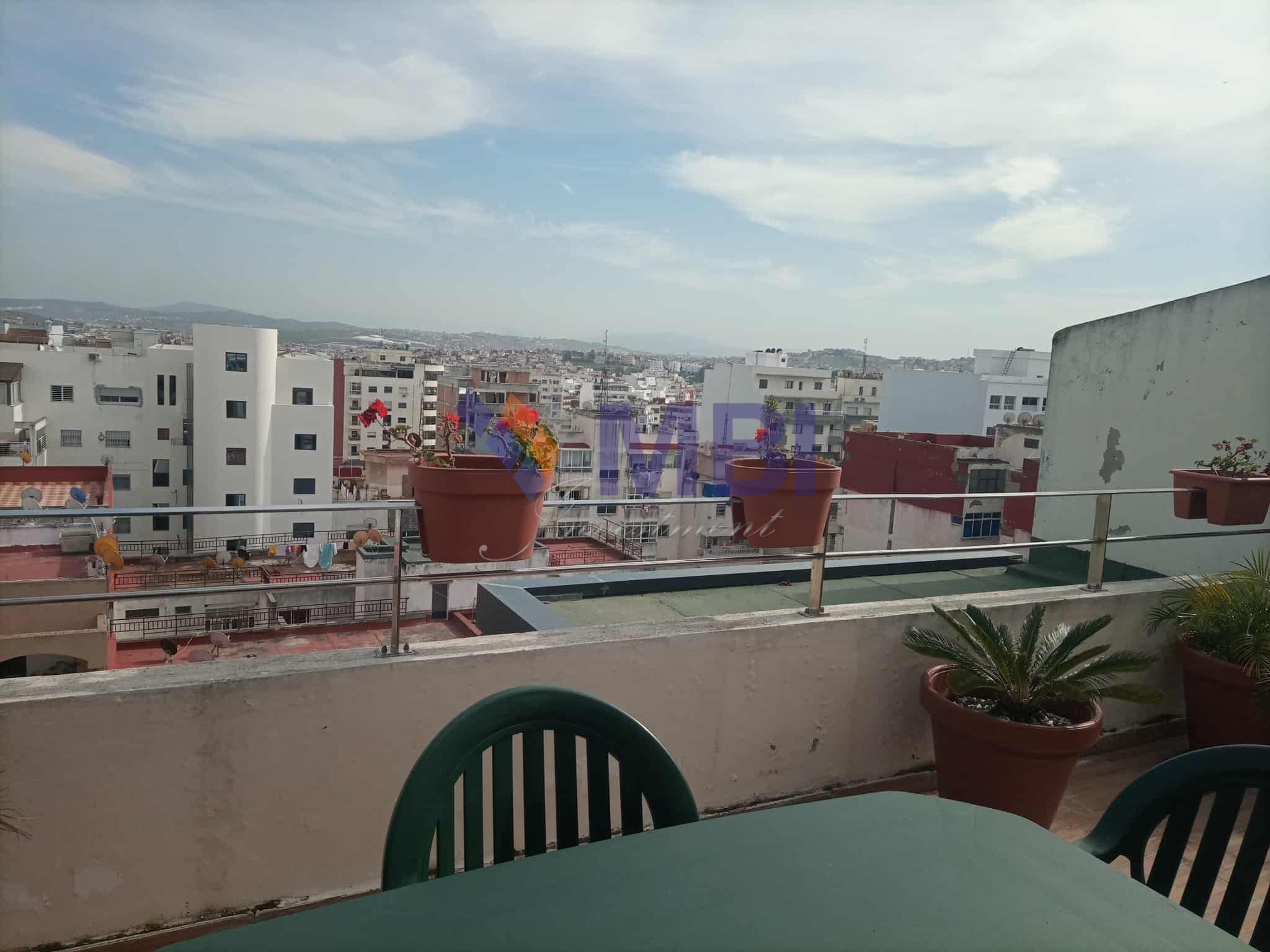 L’agence MBI INVESTMENT vous propose à la location cet appartement meublé , au 10 ème étage, d’une surface habitable totale de 106 m2(70 m2 + 36 m2 de terrasse ) avec vue sur rue ( sans vis à vis ), dans un immeuble résidentiel avec parking , sécurisé, proche de l’avenue de la Résistance ( l’école Berchet ) à 2 minutes à pied de la Mairie (Wilaya), supermarché, boulangeries, pâtisseries, crèches….à 10 minutes du boulevard Mohamed 5 , du lycée Regnault , plage, la marina,…