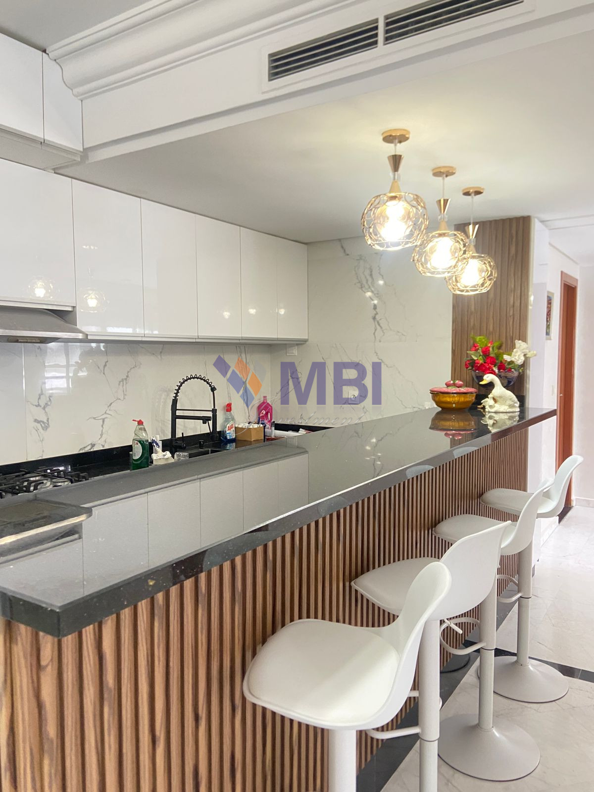 L’agence MBI Investment vous propose cet appartement de 77 m2, moderne, avec une vue sur la piscine, bien distribué, fonctionnel, dans une résidence privée et sécurisée, comprenant 1 piscine commune, et proche du supermarché ACIMA-MARJANE , des restaurants , cafés , 2 chambres à coucher , 2sdb, salon, très lumineux et ensoleillé, (cuisine équipée, climatisation centralisée, marbre au sol).