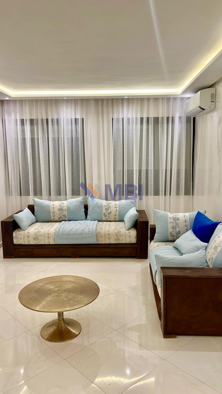 L ‘agence immobilière MBI INVESTMENT mets à votre disposition cet appartement meublé modernement, de 120 m2, entièrement équipé, à la location longue durée uniquement, en plein centre ville , quartier dit Place Mozart, Nejma ( quartier très calme e t résidentiel). L’appartement est très ensoleillé , proche du boulevard Mohamed 5, dans un immeuble neuf et moderne , récemment livré, belle entrée, sécurité, caméras de télésurveillance, , idéal pour jeune couple travaillant dans les alentours ( quartier administratif à 5 minutes, nouvelle marina et gare de TGV à 5 minutes également à pied).