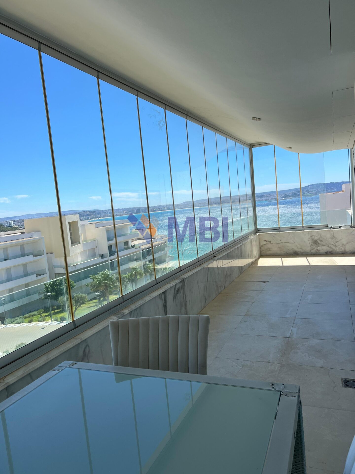 Appartements de haut-standing, en position dominante et au calme absolu, cet appartement bénéficie d’une excellente orientation car dispose d’une large terrasse vous permet de profiter d’une vue panoramique sur la baie de Tanger. Un soin particulier a été apporté aux finitions avec l’utilisation de matériaux nobles : marbre et carrelage d’importation, menuiserie bois en frêne, double vitrage, cuisine américaine entièrement équipée, garage…