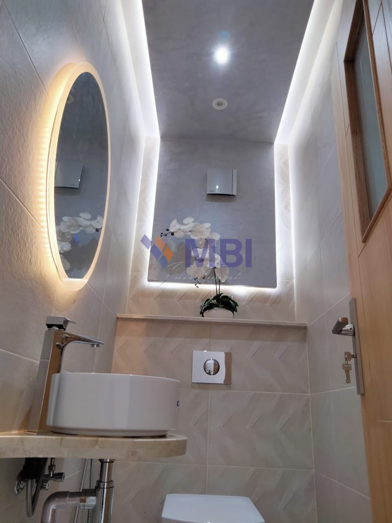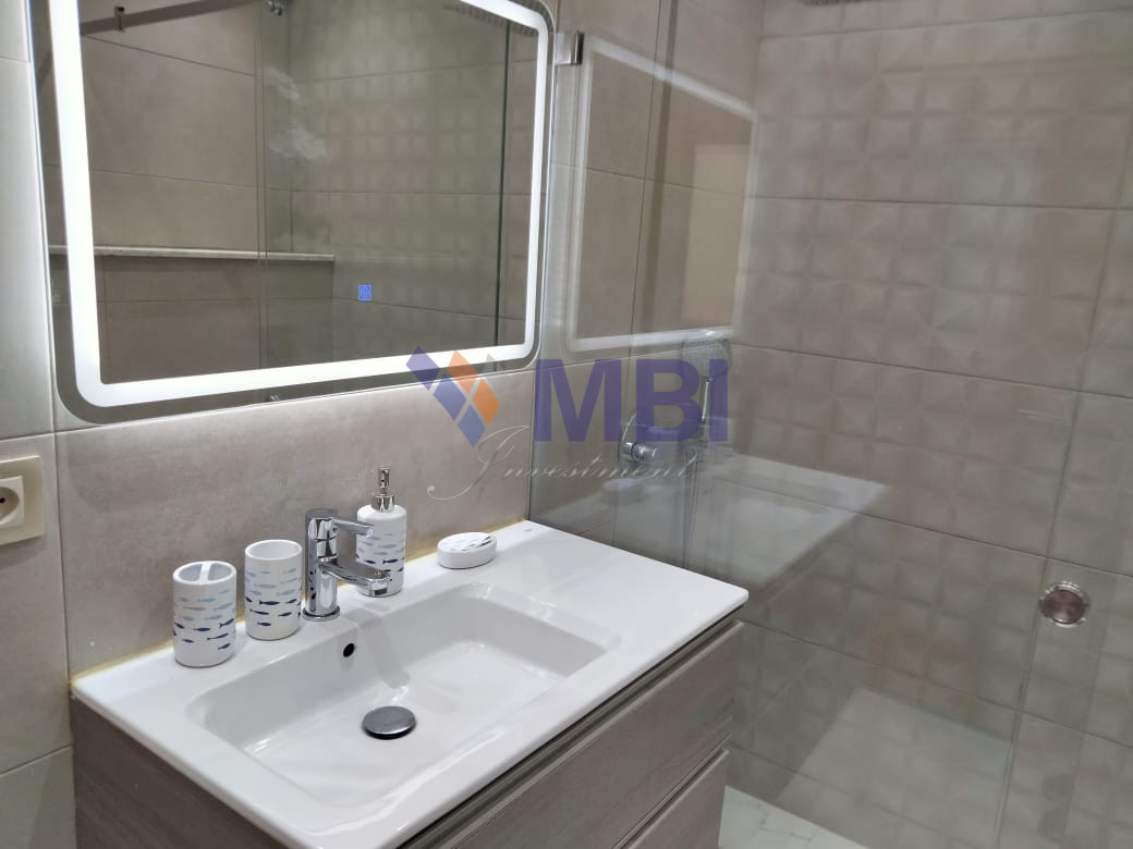 L’appartement a été entièrement refait à neuf ( du sol au plafond, aux salles de bains, à la cuisine, … ) .