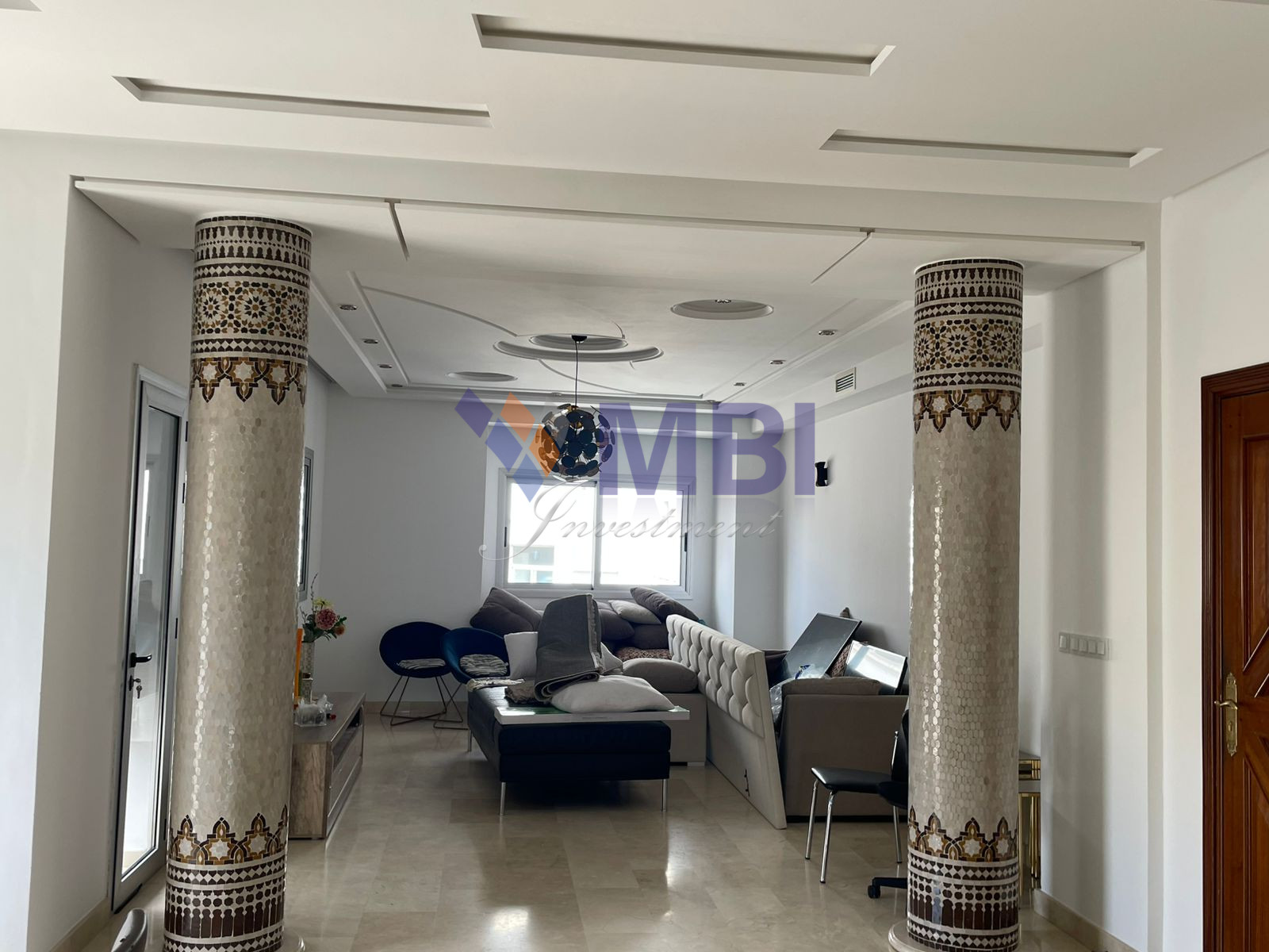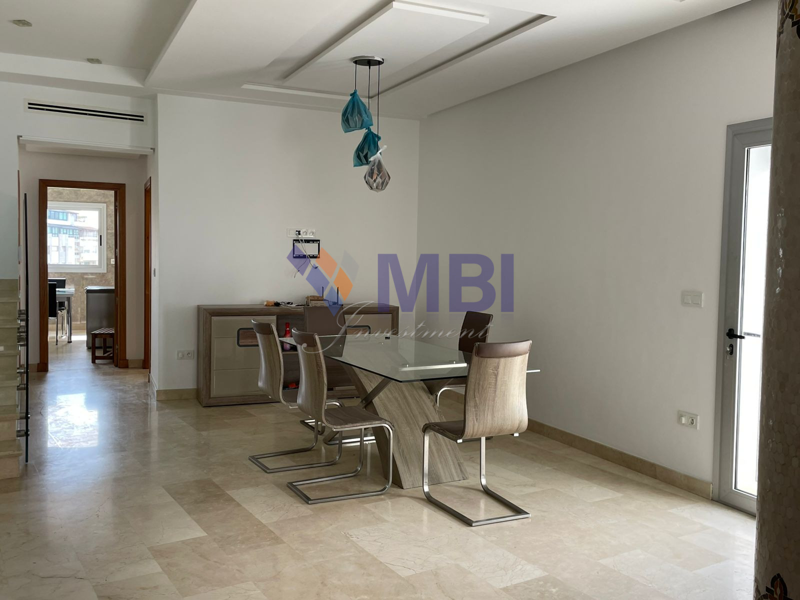 L’agence MBI Investment vous propose ce duplex, propre, meublé , bien distribué, fonctionnel, dans une résidence neuve, privée et sécurisée, très lumineux et ensoleillé , grand salon, 3 chambres, 3 salles de bains, cuisine entièrement équipée avec buanderie, climatisation centralisée, garage. Idéal pour une famille cherchant la proximité du centre ville et le calme dans un cadre moderne et fonctionnel. Proche de marjane market, salle de sport, mosquée Mohamed V, banques, cafés, restaurants.