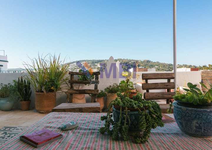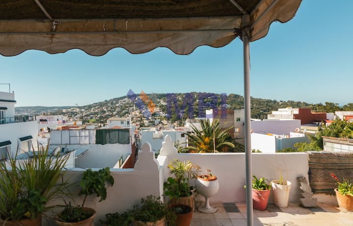 Bénéficiant d’un emplacement privilégié , sans vis à vis ( vue sur la vieille montagne ) , cette magnifique demeure propose une double terrasse privée pour vous relaxer et faire vos repas entre amis dans un cadre sympathique et dans le calme . Il se trouve à proximité d’attractions telles que le musée de la Kasbah, le musée Forbes et le port de Tanger, la plage de Merkala à 5 minutes en voiture et à 10 minutes du centre ville, Iberia.