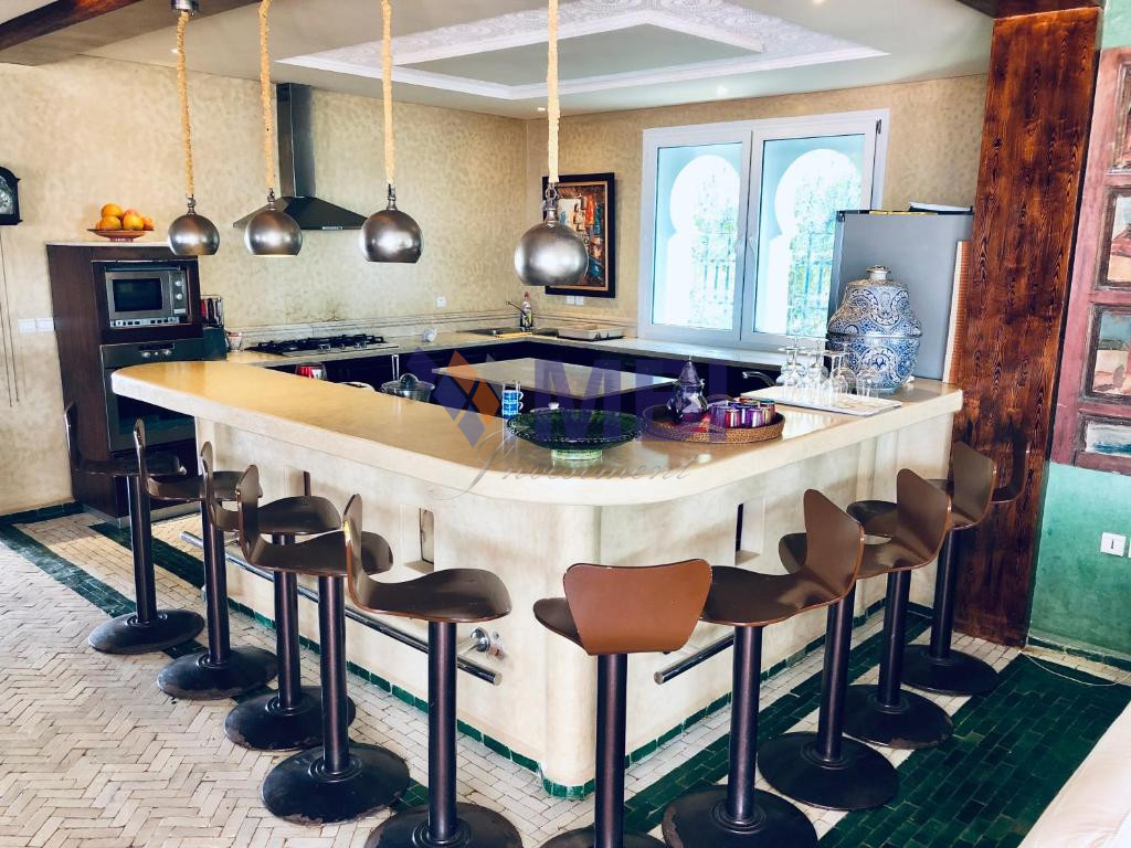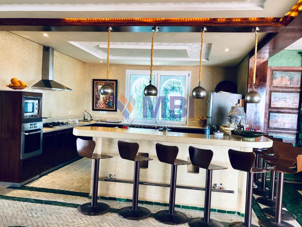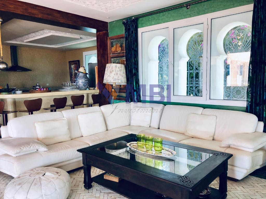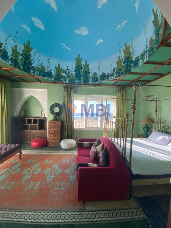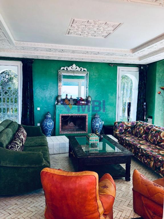 12 chambres, cuisine entièrement équipée, bar, chauffage central, climatisation centralisée, hammam, salle de conférences, économat, une salle de sport, 5 salons style marocain moderne avec une belle terrasse et piscine privée avec vue mer.