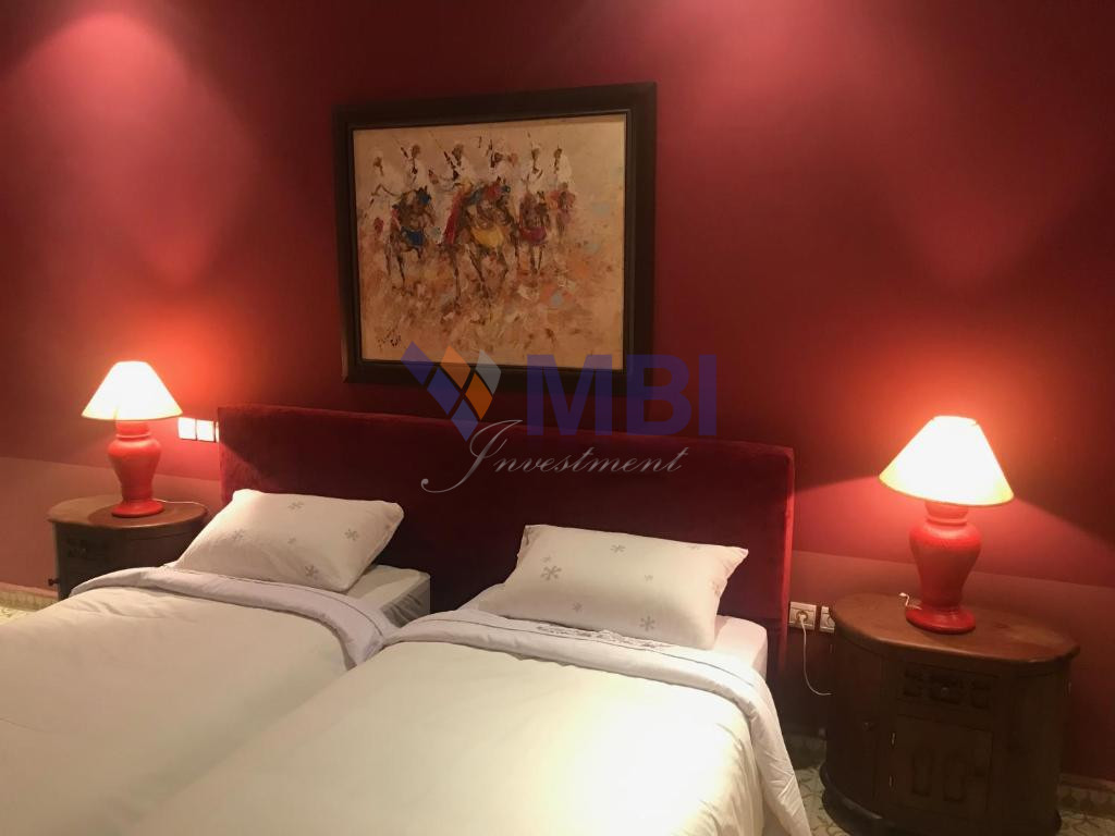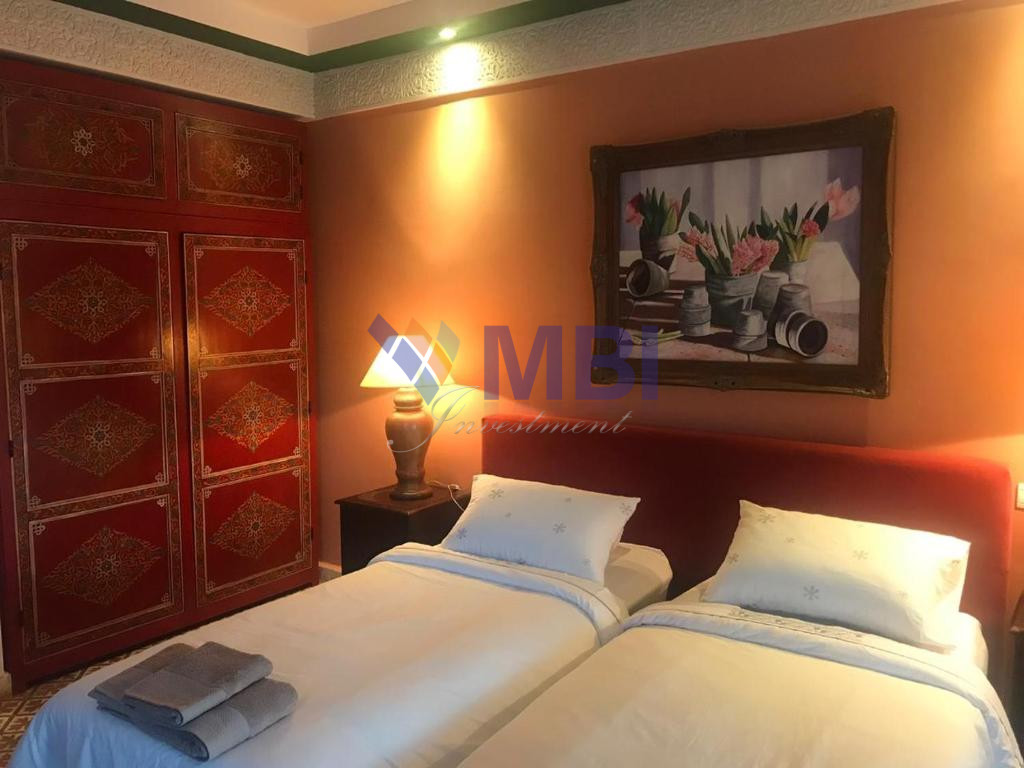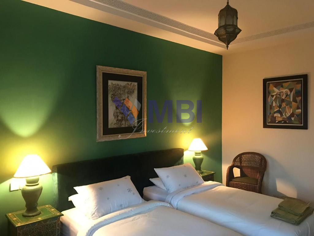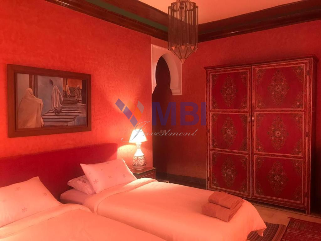 12 chambres, cuisine entièrement équipée, bar, chauffage central, climatisation centralisée, hammam, salle de conférences, économat, une salle de sport, 5 salons style marocain moderne avec une belle terrasse et piscine privée avec vue mer.