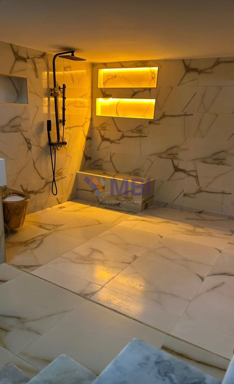 – Rdc villa : Double salon , salle a manger , cuisine américaine, hammam, piscine.