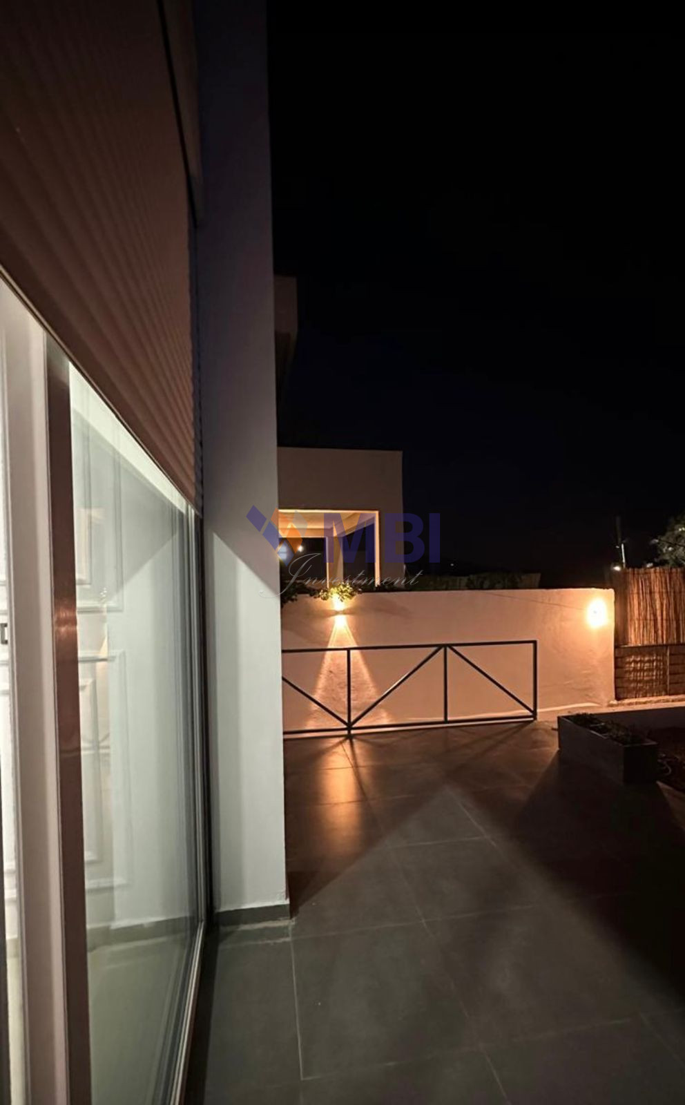 Jolies prestations : Cuisine américaine, sanitaire modernes, rideaux électriques, marbre au sol, belle terrasse.